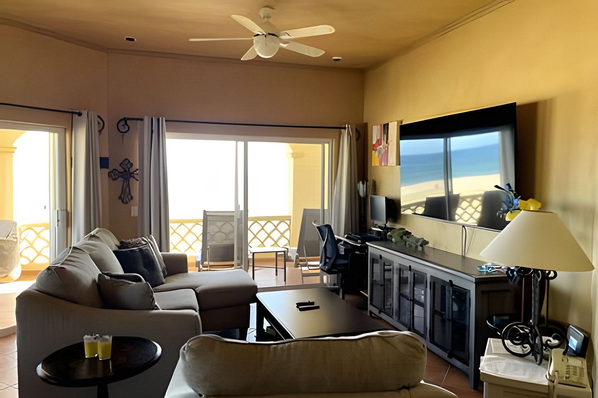 Este condominio se encuentra en segunda planta, con acceso directo desde el estacionamiento del resort. Ofrece aire acondicionado central, Wi-Fi rápido, cocina equipada, lavadora/secadora y estacionamiento privado. Todas las áreas comunes del resort están disponibles para los huéspedes registrados. Se recomienda auto para explorar San José del Cabo. No se permite fumar ni realizar fiestas en el alojamiento.